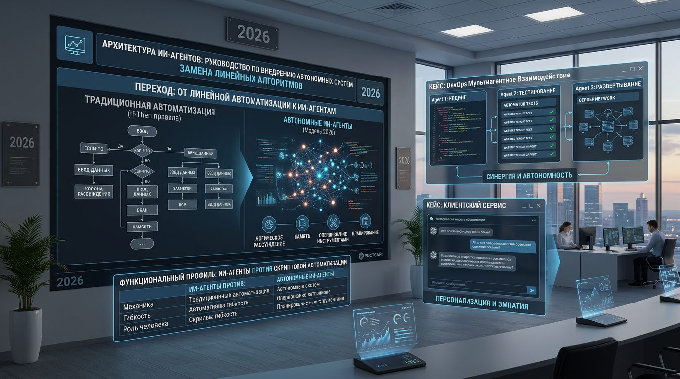 Разница между этими технологиями в 2026 году определяется мощностью процессоров и способностью системы к автономному существованию в цифровой среде компании. ИИ-агенты в бизнесе — не набор команд, а исполнители, обладающие зачатками когнитивных функций.